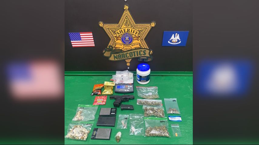 Dent was booked into the East Baton Rouge Parish Prison on various drug possession and distribution charges, as well as illegal carrying of a firearm by a convicted felon and illegal carrying of a firearm with drugs.