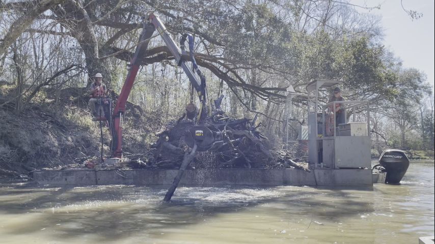 When the project first began, the debris estimates were hard to determine since a lot of the material was underwater. Rough guesses were about 12,000 cubic yards. So far, about 20,000 cubic yards of debris have been removed from Bayou Manchac in East Baton Rouge Parish. That's enough to cover a football field and pile it about nine feet high. The additional funding will be used to complete the job in Baton Rouge, which could be another 2,500 cubic yards of debris.