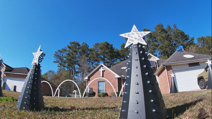 Daisey said while he loves spreading cheer to all his neighbors and visitors who come by, he's hoping the light show inspires people to donate to a good cause. Set up near the display are large bins under a tent where people can drop off unused toys for the Livingston Parish Sheriff's Office Christmas Crusade or monetary donations for Mighty Moms of Livingston to help feed children in need.