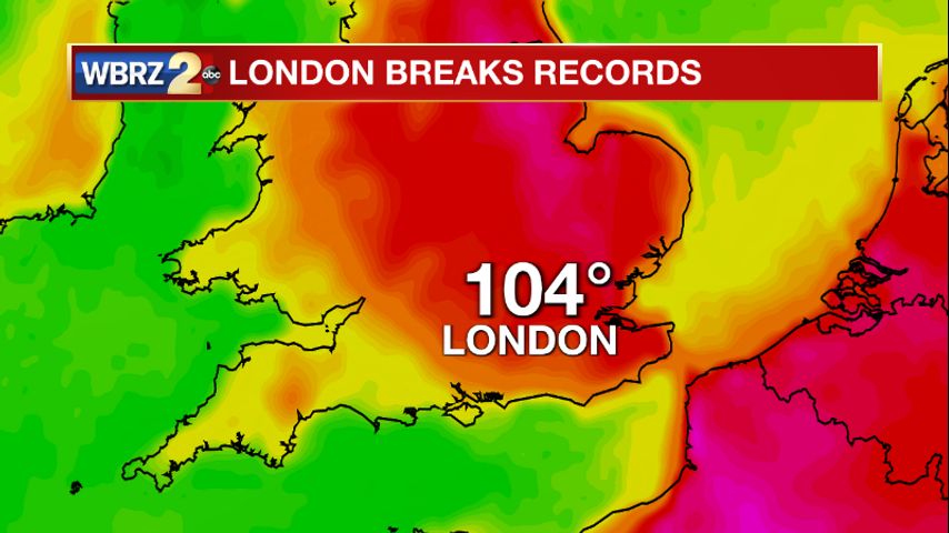 London temperatures have reached 104°, the highest in history. Amid a heat wave, hot temperatures have been in the forecast. The UK Met Office preparing for the extreme heat issued their first ever Red Extreme heat warning. Average high temperatures in London this time of year max out in the mid-70s. Today, the temperature topped out at 104.4° at the Heathrow Airport. The previous record was set in 2019 at 101.7°.