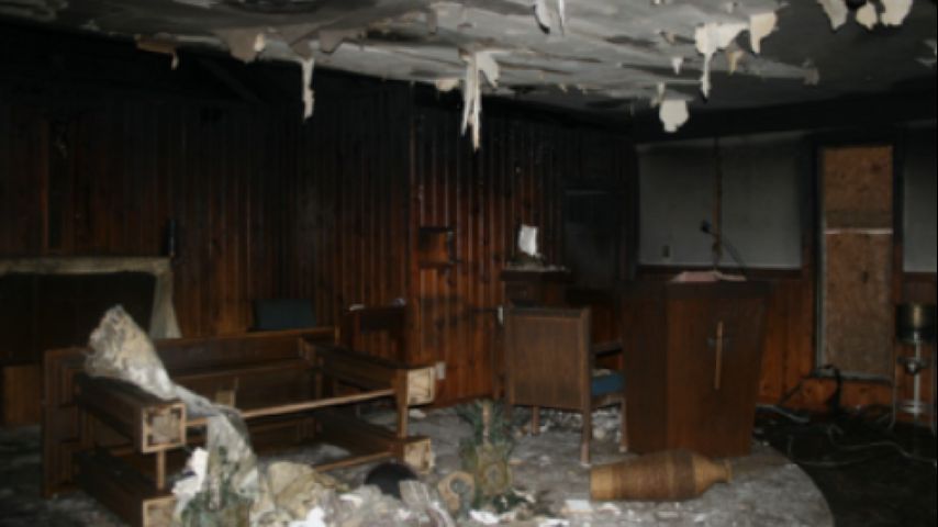 "After ransacking the church's electronic equipment, including the theft of at least three televisions and a sound system, the men set the church ablaze," the government said.