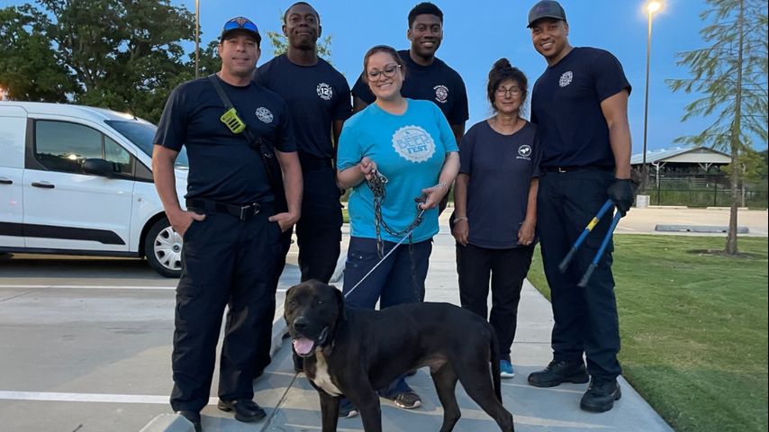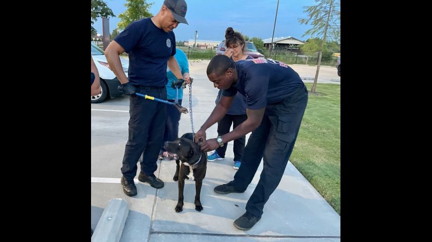 Fire crews help animal shelter cut padlocked chain from dog's neck