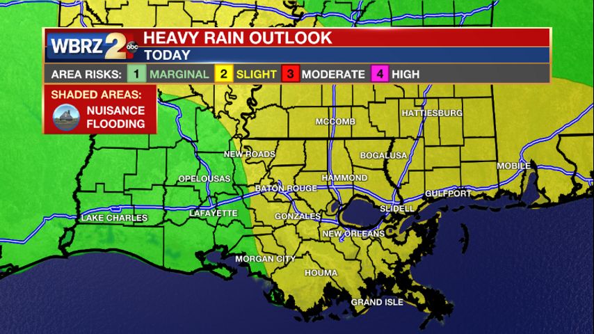 Reminder: With the threat for impactful weather— street and poor drainage flood —please have access to alerts through this week. You can download or activate the WBRZ WX App on your Apple or Android device or turn on a NOAA Weather Radio for bulletins such as watches and urgent warnings. Of course, WBRZ, WBRZ+ and the Cable Weather Channel will have updates as active weather dictates.