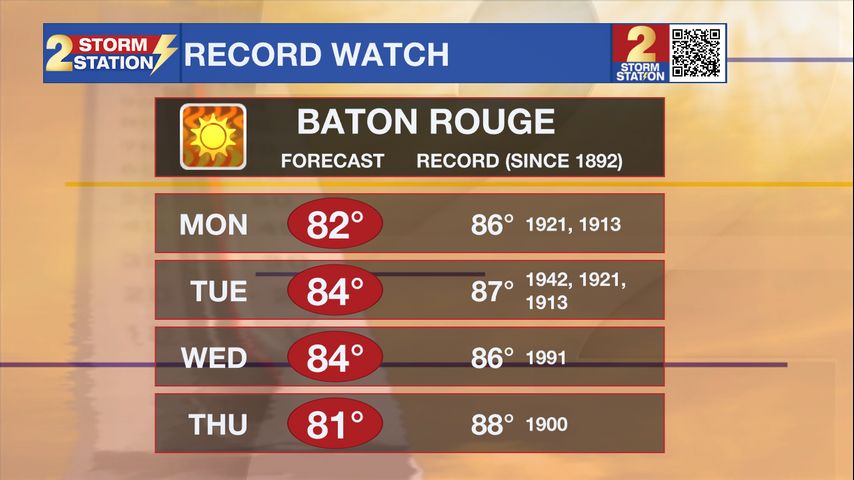 Baton Rouge will continue its run of unusually warm, dry November weather this week, with foggy mornings and several days coming close to long-standing temperature records.