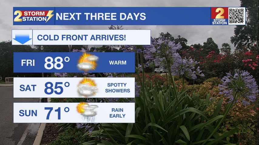Up Next: We will see a complete switch-up in weather conditions over the weekend. Saturday continues the trend of above average temperatures, with afternoon temps back into the 80's paired with the muggy air. Skies will remain mostly cloudy with a few spotty showers but most will stay dry during the day. Late Saturday night into the early hours of Sunday, a cold front will swipe through SE Louisiana from north to south, bringing with it numerous showers and thunderstorms. However, by mid-morning on Sunday, most of the rain should be exiting to the east and begin being replaced by cooler and drier air. In fact, temperatures on Sunday may struggle to warm past the low-70's, well below average for this time of year.