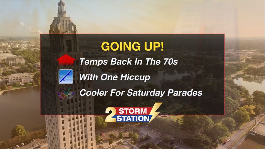 Up Next: A weak front looks to push through early on Saturday morning. Do not expect any sort of major change, as temperatures will only move 3-5 degrees cooler for about 24 hours. Highs will reach near 67 degrees Saturday, with lows in the upper 30s Sunday morning. Sunshine will dominate all weekend long, perfect for any parades.