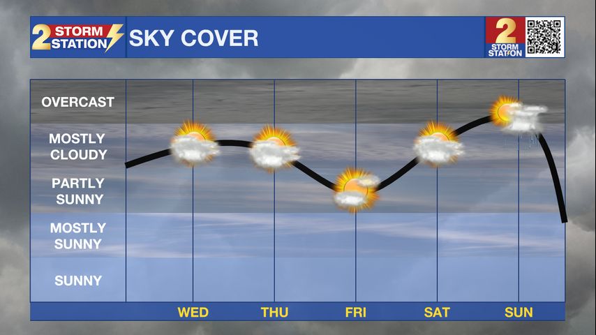 Up Next: The rest of the workweek will be tranquil with mainly clear skies, lows in the mid 50s and highs in the upper 70s. Some high clouds will start to mix in over the weekend, but will not produce any rain. The mornings will start off seasonable in the mid 50s followed by warm afternoons in the low 80s. No rain is found in the forecast right on through the middle of next week. The warming trend will continue and highs could flirt with 90 degrees for the first time this year.