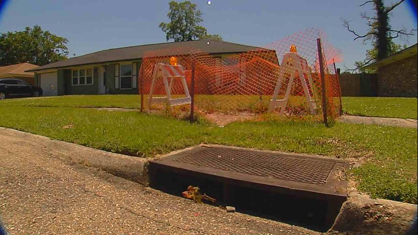 There was a sewer pipe cave-in that caused the issue. The City-Parish tells 2 On Your Side the pipe has been repaired and the hole has been back-filled. On February 7, 2017, it said: "the sidewalk will be poured ASAP."