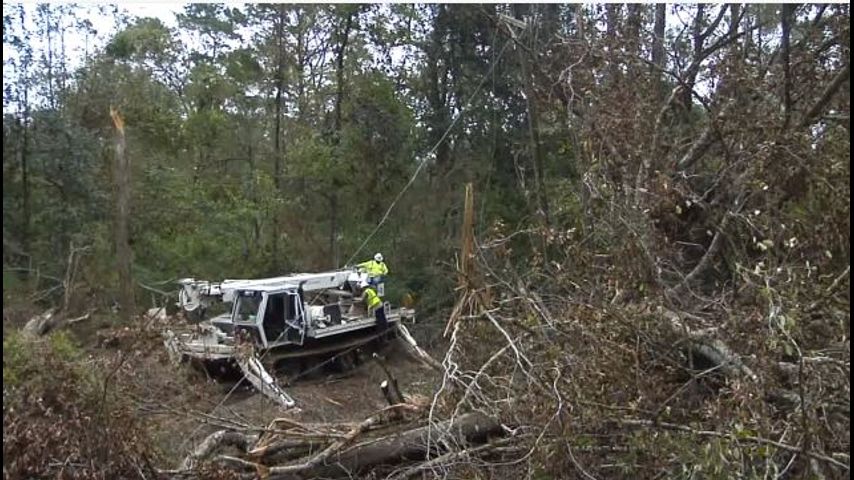 ST. HELENA PARISH - Utility workers are repairing power lines in the front yard of Cindi Tranchina's home near Greensburg. She's been without power for two weeks.