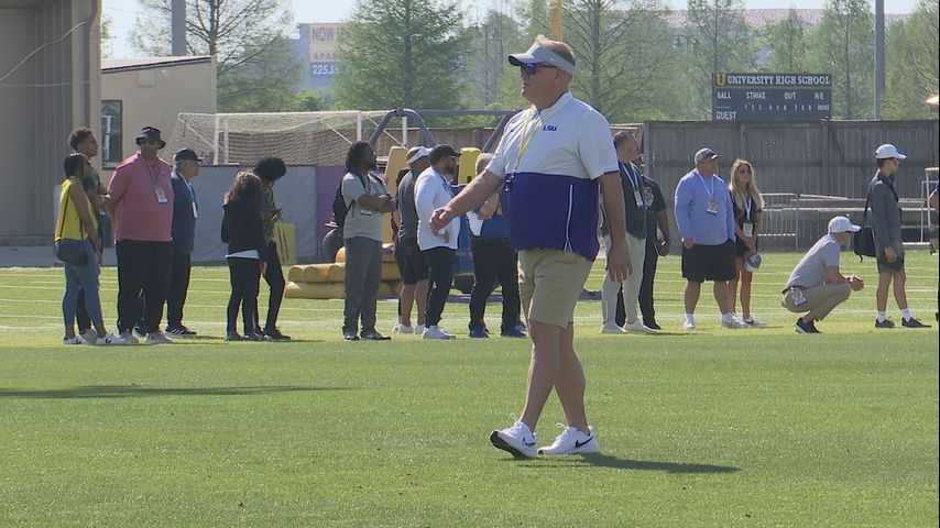 BATON ROUGE - LSU football coach Brian Kelly met with the media after Saturday's spring practice.