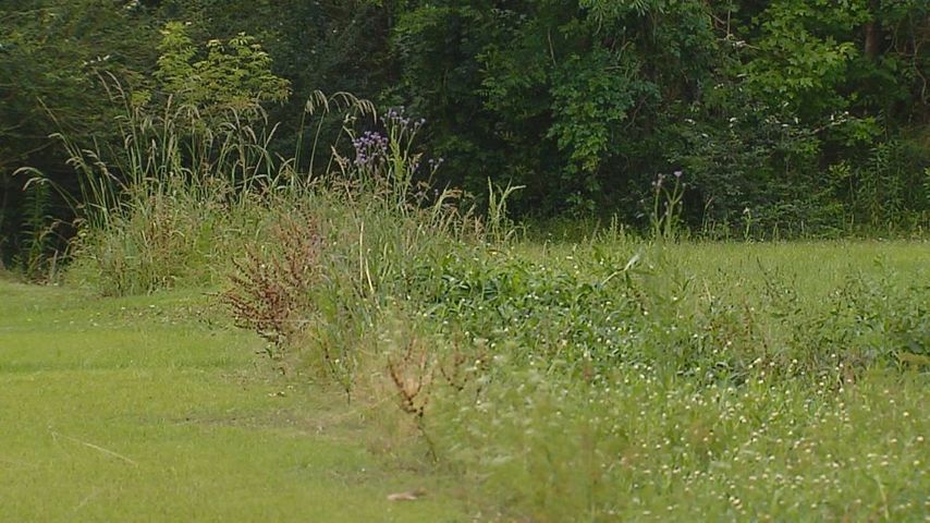 The weeds growing in the drainage ditch are a couple feet high. Abbott says he often sees snakes and other critters in there.