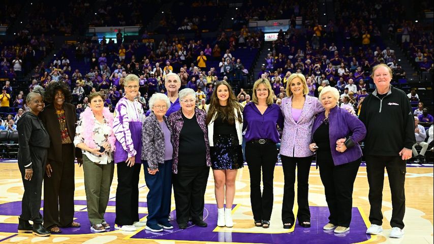 At halftime of the game, head coach Kim Mulkey welcomed in her former coaches that helped guide her during her playing days to the Maravich Center to honor their contributions to women's basketball in the state of Louisiana.