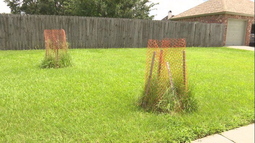 Two of the holes are in his side yard, and two others are in his fenced-in backyard. Each one is surrounded by orange netting and held in place with tall wooden stakes. He says he first noticed them in 2016 and started calling the city-parish.