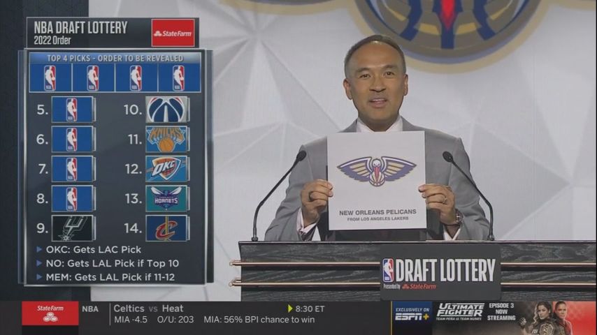 New Orleans had a slim 6% chance of winning Tuesday’s draft lottery and a 26.3 percent chance of moving up into a top-four pick. Pels didn't get either but New Orleans still came away a winner in Chicago, simply by procuring the Los Angeles Lakers’ first-round selection.