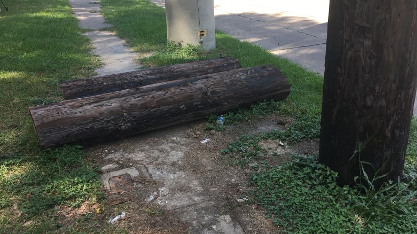 BATON ROUGE - A pole laying across the sidewalk had been frustrating residents for far too long. Two pieces of wood telephone pole had been sitting on the sidewalk in the 5900-block of Evangeline Street.