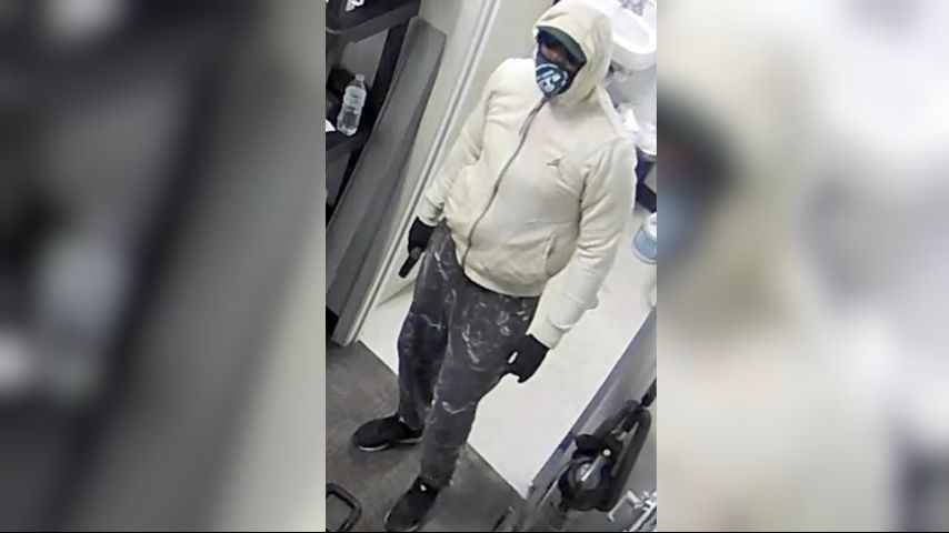 Surveillance video taken before the robbery shows the suspect walking behind the Williamson Eye Center after possibly crossing over from Spring Park Plaza shopping center.