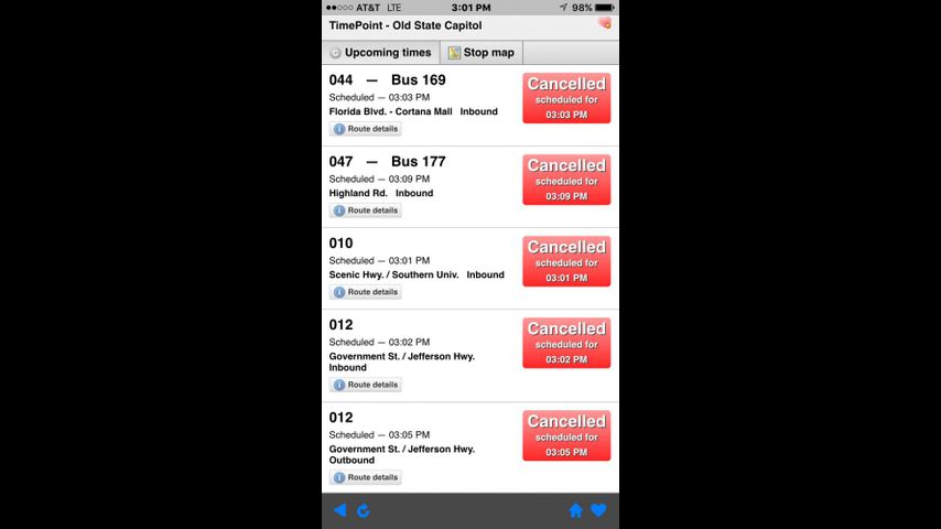 Interim CEO Bill Deville said the cancellations appeared on the app Friday because of a downtown event. Routes were actually rerouted, he said.