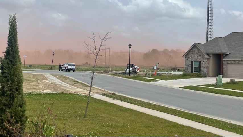 GONZALES - The sky was painted red Wednesday when red dust was kicked up by the strong wind. Homeowners in Pelican Crossing have been contacting 2 On Your Side about it since they're not happy with the company that's supposed to keep it under control.