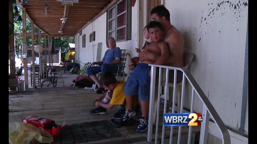 One of Saplut’s neighbors, Russell Guidry said he is sleeping outside on a cot next to his flooded trailer home. Guidry says he’s just thankful that he has water to wash his clothes.