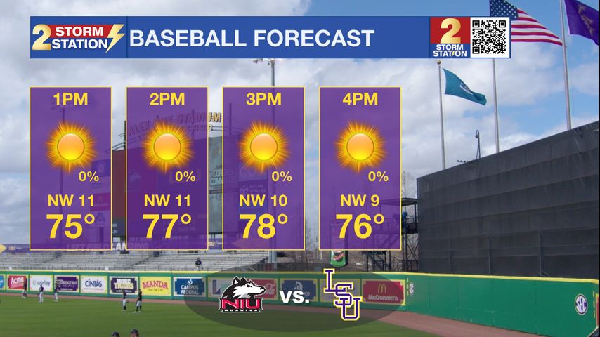 Today & Tonight: Today will feature lots of sunshine. It is rare that we find a warm day with no humidity down here in the south, but today is one of those days. Expect high temperatures to top out near 78 degrees. This will be perfect weather for some LSU baseball. Tonight, expect clear skies with a low around 45 degrees.