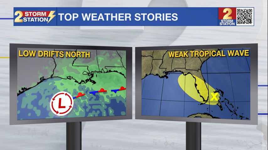 The tropics remain active but relatively quiet close to home. A weak low has formed over the north-central Gulf, and will drift northwest toward Texas. Any development is unlikely. Another area of low pressure over the northwestern Bahamas will drift toward southern Florida today, bringing periods of heavy rain but no tropical development is expected. Farther east, a tropical wave moving across the Atlantic could gradually organize next week and may become a depression as it approaches the Leeward Islands.