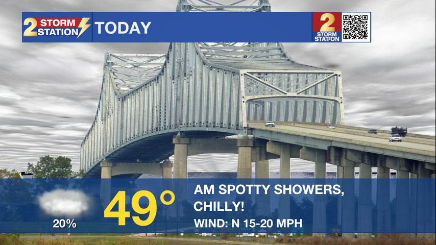Today & Tonight: Today is shaping up to be a chilly and dreary day. An early morning cold front has already knocked temperatures into the mid to upper 40's. They will likely remain that way all day long. Those temperatures will actually feel colder than that because of overcast skies and northerly winds 10-15 mph. Wind chills during daytime hours could feel up to 10° cooler than the thermometer reads. Make sure to bundle up if you are headed out to Alex Box Stadium for the second game of opening weekend or if you have any outdoor activities planned. Some very light spotty showers will be possible in the AM hours, but the 2nd half of the day is looking mainly dry. Tonight, clouds will stick around through most of the night, but these should begin to clear closer to daybreak. Temperatures are expected to bottom out in the mid 30's.