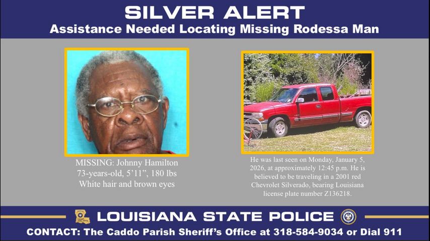 RODESSA — Louisiana State Police has issued a Silver Alert on behalf of the Caddo Parish Sheriff’s Office for 73-year-old Johnny Hamilton.