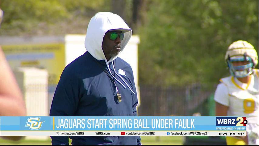 BATON ROUGE - Southern started anew on Monday as new head coach Marshall Faulk conducted the Jaguar football teams' first spring practice session just outside of Mumford Stadium.
