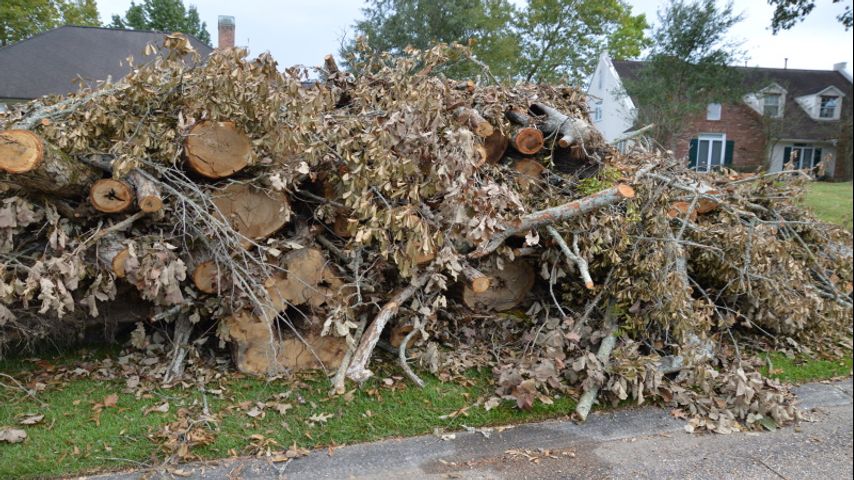 It's been a week since Hurricane Delta blew through Louisiana, knocking out power for thousands, blowing branches into yards, and toppling trees. By now, many people have piled their storm debris at the curb for pick-up. Others have gotten a head start by putting their woody debris in with their regular trash, and it's slowing down trash pick up around town.