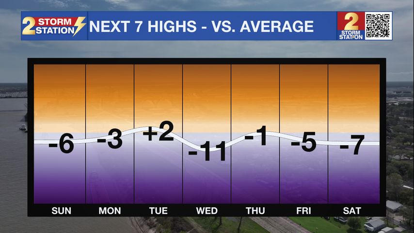 Up Next: Temperatures will flirt with the freezing mark on Tuesday morning along and north of the I-10/12 corridor. Sensitive plants will need protection, and ensure pets have access to warm shelter. Temperatures will gradually warm thereafter, with highs close to 60° on Tuesday and even warmer on Wednesday. It’s worth noting these readings are right on pace with seasonal averages. This modest warmup will coincide with a weak disturbance that could bring a few sprinkles or light showers late Tuesday night. Any rainfall will be minimal and insignificant. Another cold front will follow on Wednesday, setting up another chilly stretch to wrap up the workweek.