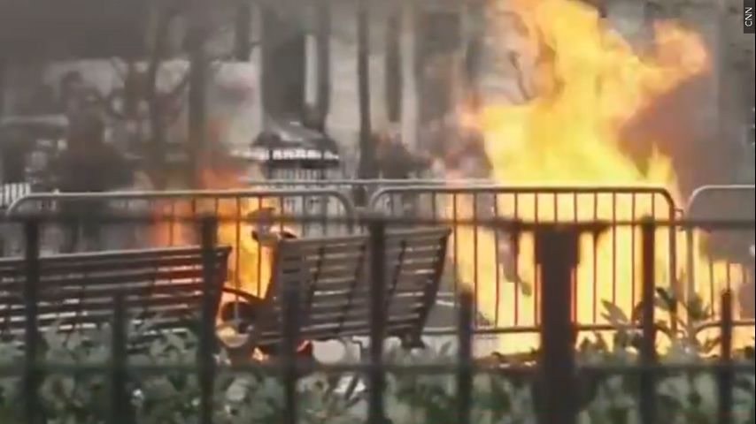 The man was in Collect Pond Park around 1:30 p.m. Friday when he took out pamphlets espousing conspiracy theories, tossed them around, then doused himself in an accelerant and set himself on fire, officials and witnesses said.