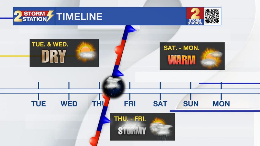 The weekend is trending a bit drier. Depending on when the storm system exits Friday, we could continue to trend drier on Saturday for any LSU Graduation celebrations or if you're heading out to Alex Box Stadium. By Sunday, very warm and partly sunny conditions return to the Capital Area.
