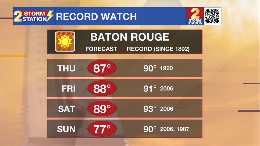 Up Next: Our stretch of very warm and dry conditions isn't going anywhere just yet, as this pattern stays locked in through Saturday. We are looking at highs pushing the upper 80s by the tail end of the week, and it’s not out of the question for a few spots to hit that 90° mark. If we do reach 90° in Baton Rouge, we’ll be hitting that milestone more than three weeks earlier than we usually do. With a huge weekend for outdoor events—including the Blues Festival, French Quarter Fest, and LSU Baseball—staying hydrated needs to be your top priority. Don't underestimate the sun, either; even though it’s only mid-April, the solar intensity is equivalent to what we see in mid-August. That means you can catch a sunburn in as little as 20 to 30 minutes, so keep the sunscreen close by!