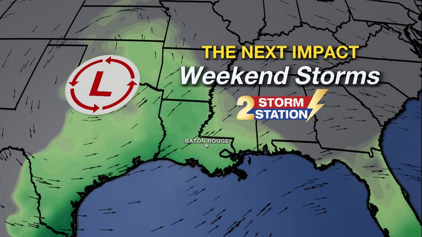 The Next Impact: The muggy feel will be back in full swing by the weekend, and as an upper-level disturbance moves toward the lower Mississippi River Valley, that’s a recipe for another round of showers and storms. This will be something to keep an eye on, especially with LSU and Southern both playing at home this weekend. A few showers may pop up as early as Saturday afternoon, but the latest data has trended a little later with the arrival time of storms. Confidence is increasing for the majority of rain coming late Saturday and possibly lasting into a good portion of Sunday. Rainfall on the order of 1-3” is expected with this system, and while widespread severe weather looks unlikely, a strong storm or two is not out of the question.