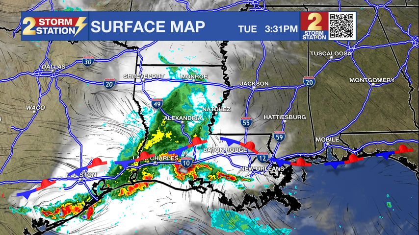 Up Next: The stalled, weak front will stick around through Friday before dissipating as it slides north. The front keep the most humid air near the coast with relatively drier air inland across southwest Mississippi. Temperatures will also slide back a little bit with highs and lows in the low 90s and low 70s respectively. These numbers will be about 5 degrees lower than what we experienced to start the week, but for those areas north of the front and the I-12 corridor, feels-like temperatures could be as much as 10 degrees lower.