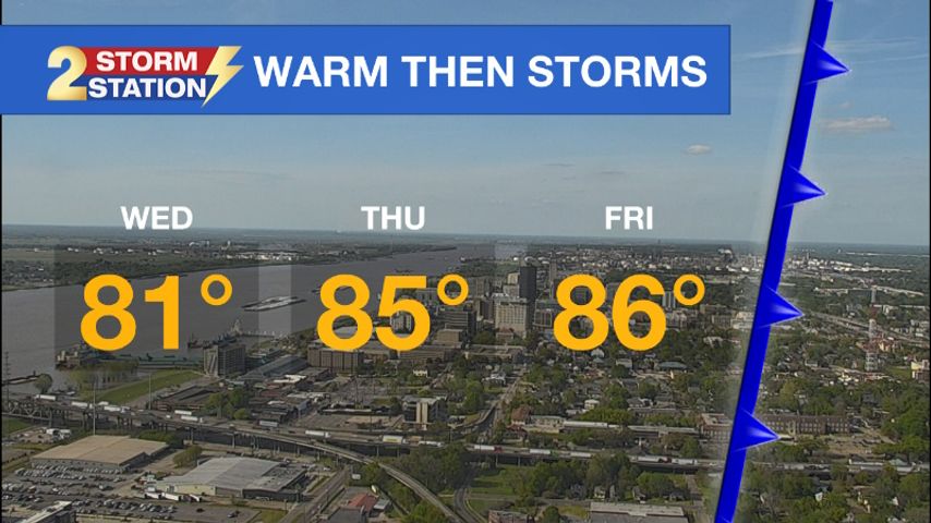 Up Next: Warming will be the story through Friday with morning lows in the 60s and afternoon highs in the 80s. Later Friday, a frontal system will push into the area with a round of showers and thunderstorms.