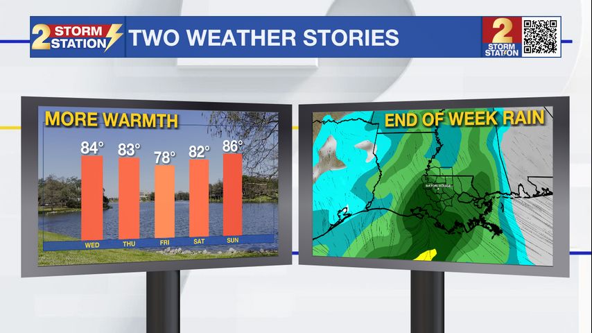 Baton Rouge is in for a mostly quiet weather pattern through the end of the workweek, with warm temperatures and limited rain chances. However, by late Friday, a system moving in from Texas will bring showers and thunderstorms.