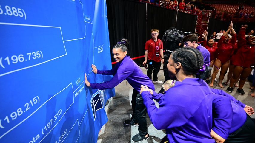 WATCH: LSU gymnastics discusses finishing first in semifinals, advancing to finals