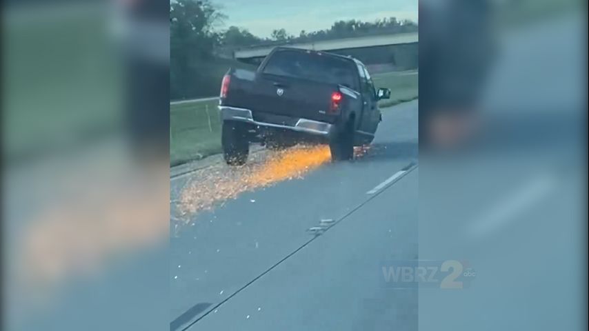 The truck lost a front tire as the pursuit made its way down the interstate into Baton Rouge. Traffic cameras in the area captured the truck grinding its front, passenger-side wheel on the roadway as it continued to evade troopers.
