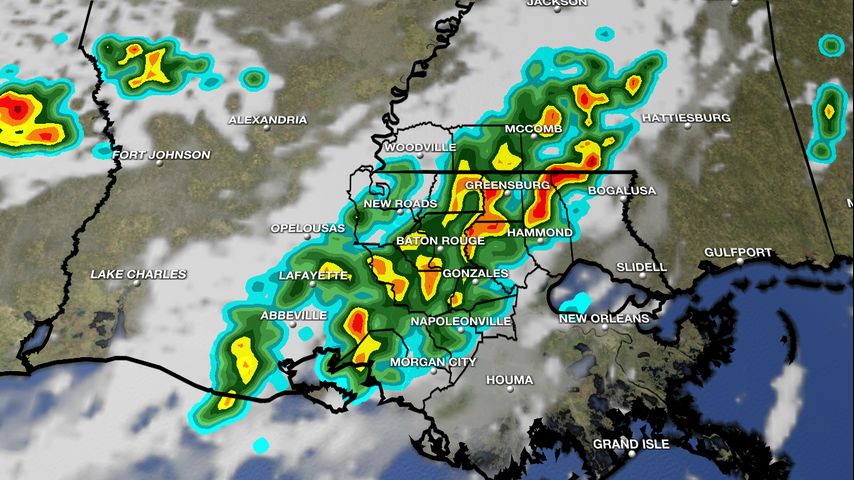 Another round of strong storms will move through Louisiana today. Similar to Tuesday afternoon, gusty winds, heavy downpours, and quick spin-up tornadoes will be possible.