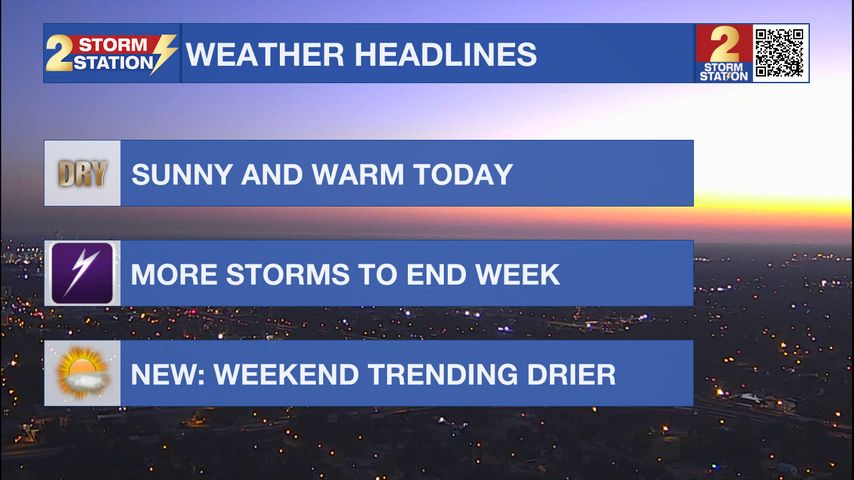 Wednesday AM Forecast: Sunny and warm today, Storm chances return to end week