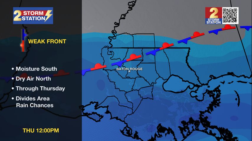 A weak, stalled front has become the dividing line between where showers and thunderstorms develop and where they do not. This boundary will lose its influence over the forecast by the weekend.