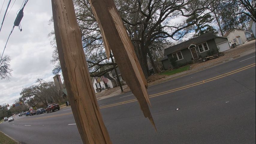 Anderson says the last time a pole was hit near his house was Sunday, when a vehicle ran into a pole and the jaws of life had to be used to free the person. Car parts still litter the sidewalk along Stanford Avenue.